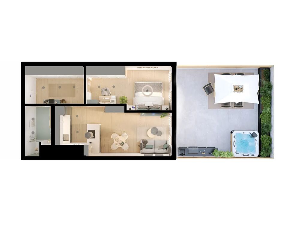 V nově zahájené výstavbě projektu EASTGATE v Brně - Slatině při ulici Řípská nabízíme prodej krásného bytu s terasou. Jedná se byt 2+kk ve III.NP. Dům je vybaven výtahem. Každý pokoj má přístup na terasu (terasa 43 m2). Dispozice je řešena jako obývací pokoj s kuchyní (22,81 m2) a pokoje (15,47 m2), koupelna s WC (5,04 m2) a chodba (9,7 m2) s možností umístění vestavných skříní. Aktuálně se provádí základání stavby a tak je možné přizpůsobit si byt vlastním požadavkům v rámci klientských změn.