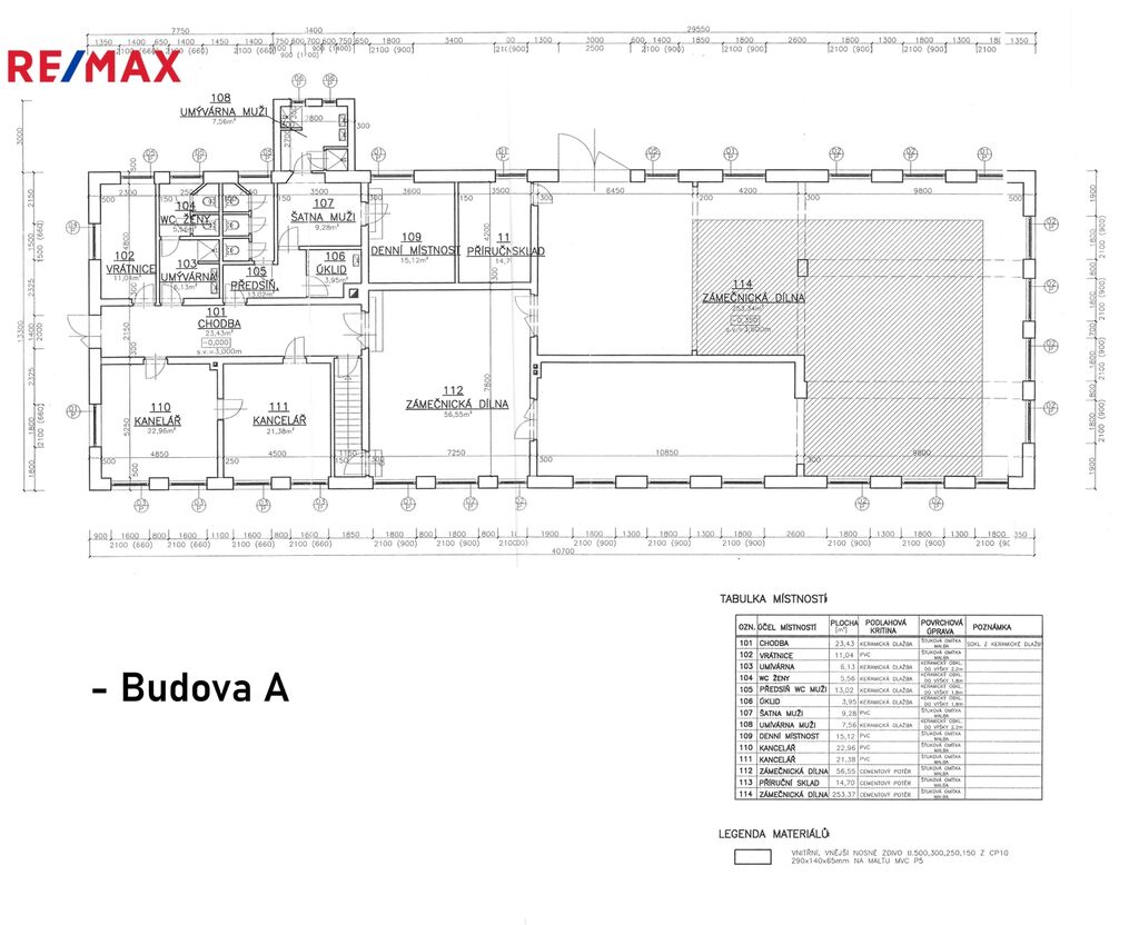 Budova A – hlavní. Stavba pro výrobu a skladování s č.p. se zázemím kanceláří a zaměstnanců + dílenských a manipulačních prostorů, celkem 894m2.