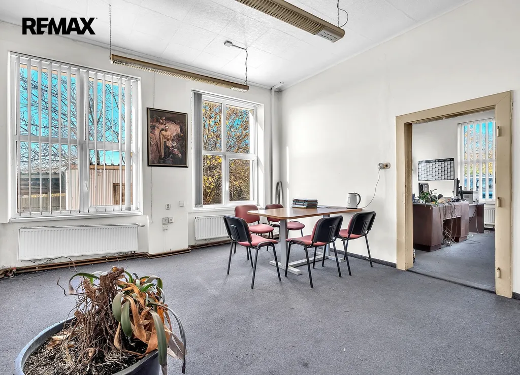 Jedná se o zděný udržovaný dvoupodlažní komplex hlavní budovy 894m2 (částečně podsklepeno cca 30m2), kde budova nabídne dvě kanceláře, zázemí pro zaměstnance – šatny, wc, umývárny a denní místnost, dále již navazují tři dílny/sklady o velikosti cca 310m2. Podlahy jsou betonové a připravené i na manipulaci s vysokozdvižným vozíkem. Hlavní vjezdová vrata o velikosti 3x2,5m. Možno rozšířit skladování lehčích materiálů v 2. nadzemním patře (půdním prostoru) o velikosti cca 400m2.