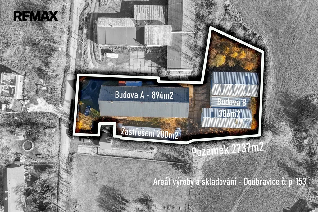 Doubravice – Areál výrobních a skladovacích prostor 1380m2, pozemek 2737m2