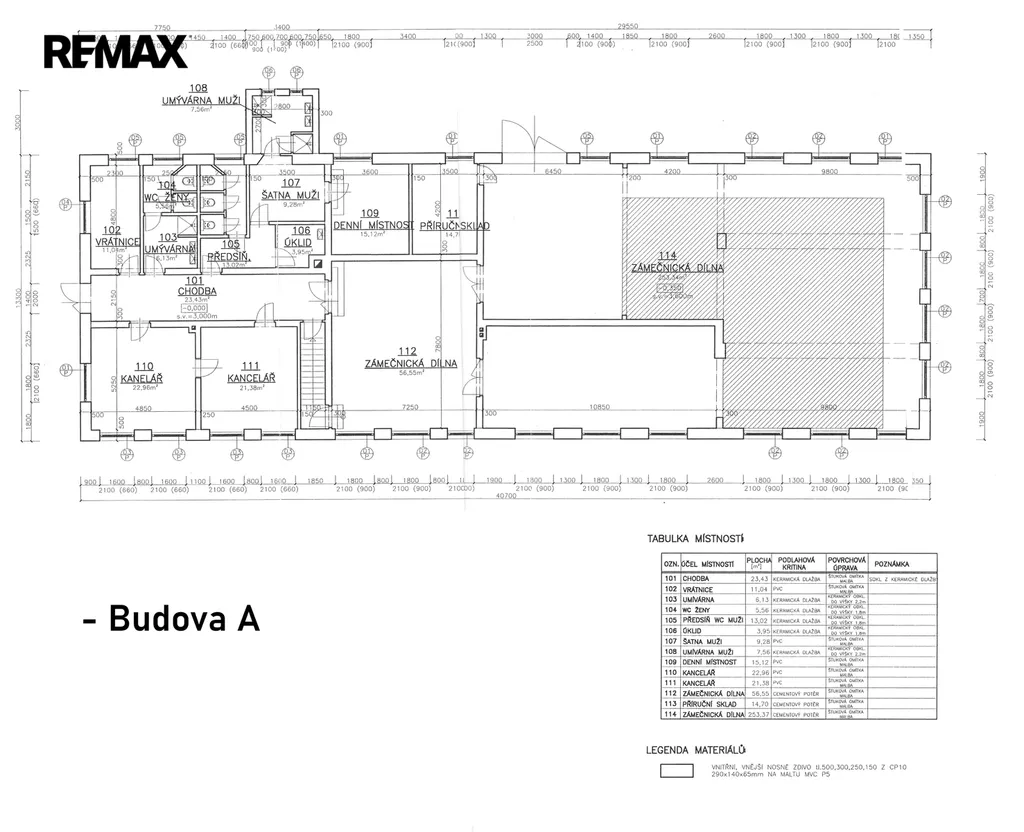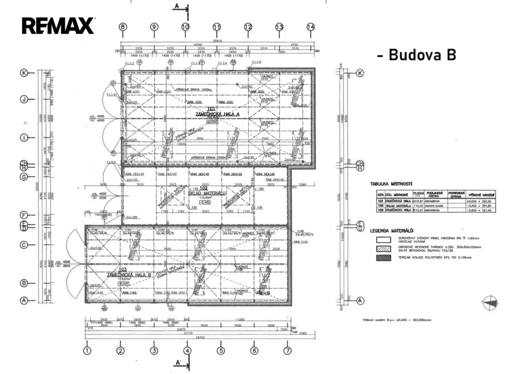 Budova A – hlavní. Stavba pro výrobu a skladování s č.p. se zázemím kanceláří a zaměstnanců + dílenských a manipulačních prostorů, celkem 894m2.