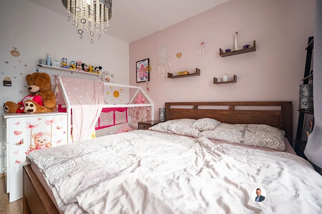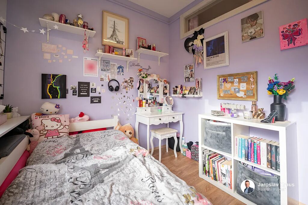 U kuchyně se také nachází samostatná pracovna, která může sloužit také jako spíž na uskladnění potravin. Dětský pokoj je rozdělen sádrokartonovou příčkou na 2 menší pokojíčky. Potenciál bytu je tedy využitý na maximum.