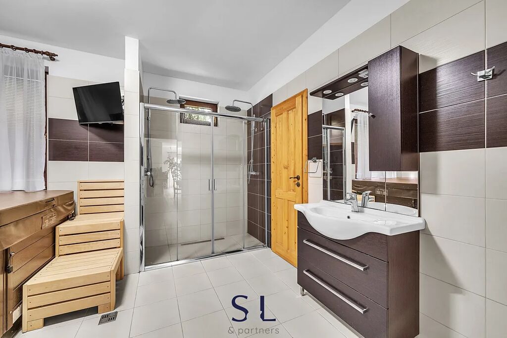 - Jedna z ložnic má vlastní koupelnu se sprchovým koutem a wc