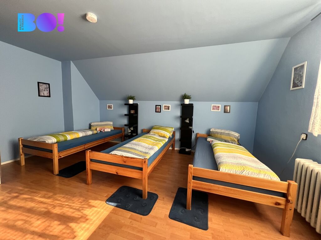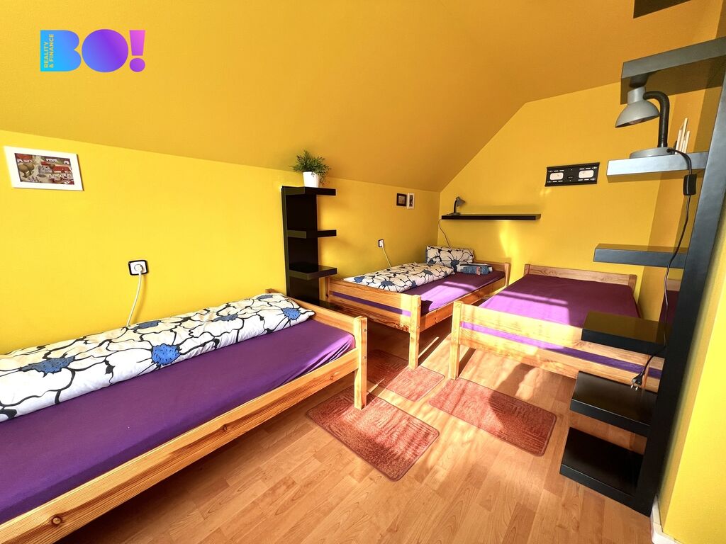 Zděná budova po částečných rekonstrukcích nabízí 2. nadzemní podlaží + podzemní podlaží, dispozici 5+1 se sociálním zázemím a zastavěnou plochu 116 m². Pozemek má 616 m², je rovinatý, oplocený a pohodlně pojme garáž + přibližně 8 parkovacích míst pro hosty či nájemníky.