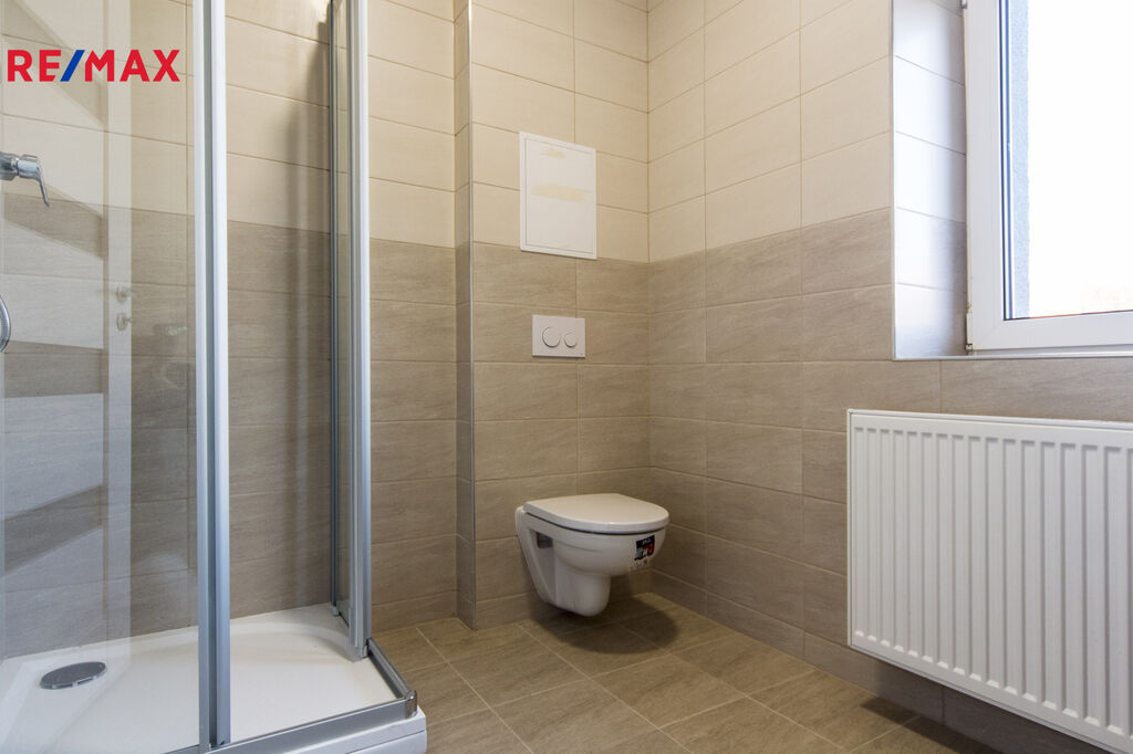 Moderně postavený dům je vytápěn pomocí tepelného čerpadla, rozvod tepla i teplé vody je ústřední.