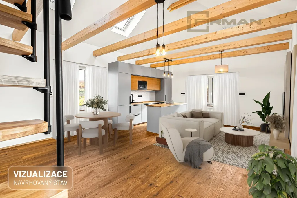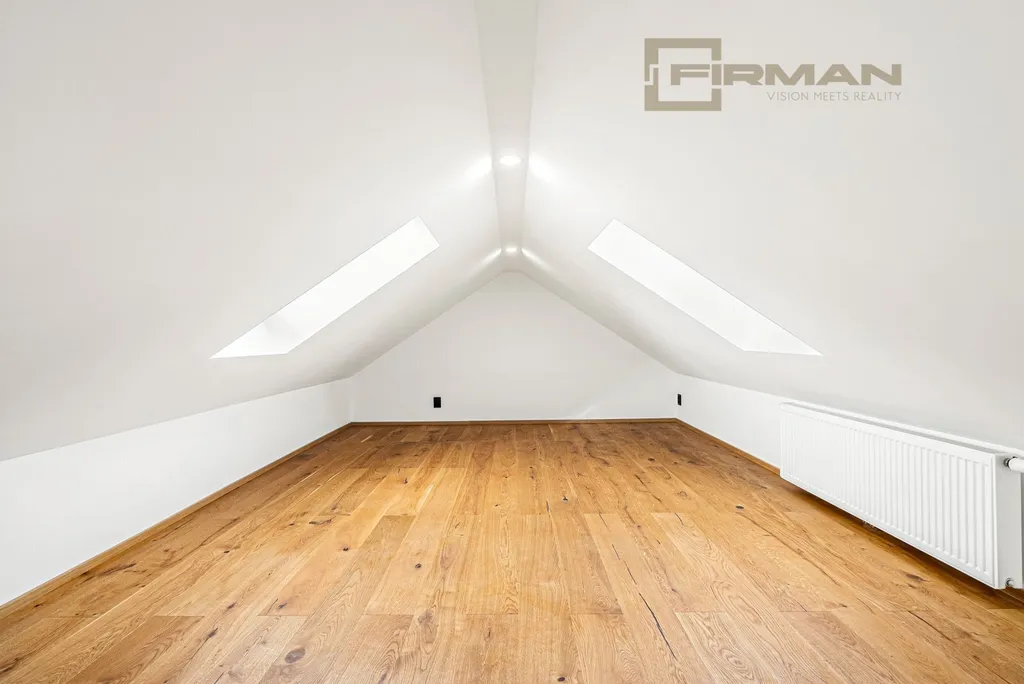 Dispozice nabízí velkolepý obývací prostor s novou moderní kuchyní, přiznanými trámy a nadstandardní výškou, který vás ohromí, jakmile do něj vstoupíte. Samostatná ložnice je klidnou zónou pro odpočinek a soukromí a pracovna s balkonem pak přináší praktické zázemí pro home office, kreativní činnost nebo úložný prostor navíc podle vašich potřeb. Krása tohoto prostoru je umocněna výhledem na největší keltské oppidium ve Střední Evropě Závist. O přítmí ve slunečných dnech se postarají dálkově ovládané střešní žaluzie.