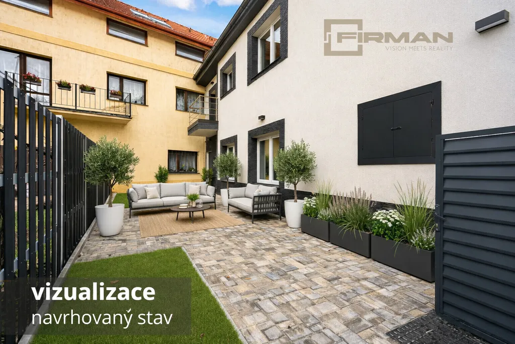 Součástí domu je vlastní pozemek s možností parkování dvou vozidel, případně lze část prostoru upravit na venkovní posezení – pro odpočinek, rodinné chvíle nebo přátelská setkání. Pro lepší představu se můžete podívat na vloženou vizualizaci této možnosti. Pokud si budete tuto úpravu přát, o vše se postaráme.