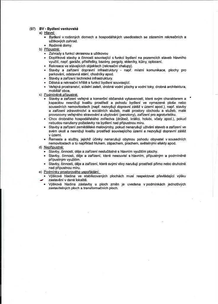 Dle územního plánu je tento pozemek zahrnut do ploch bydlení (BV)-bydlení venkovské v rodinných domech