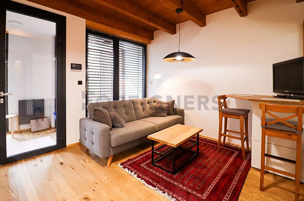 Nabízíme k pronájmu moderní, plně vybavený byt 1+kk o velikosti 35 m² s terasou (7 m²) a přístupem do sdílené zahrady ve vnitrobloku domu na ulici Kamenná, jen pár kroků od nového nábřeží řeky Svratky.