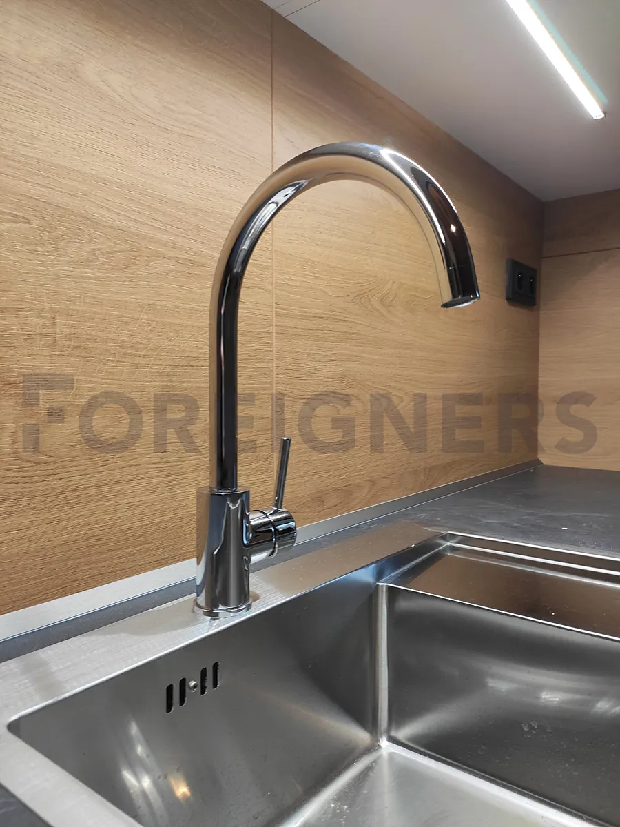 - kuchyňská linka s varnou deskou, troubou, mikrovlnkou, konvicí a lednicí s mrazákem