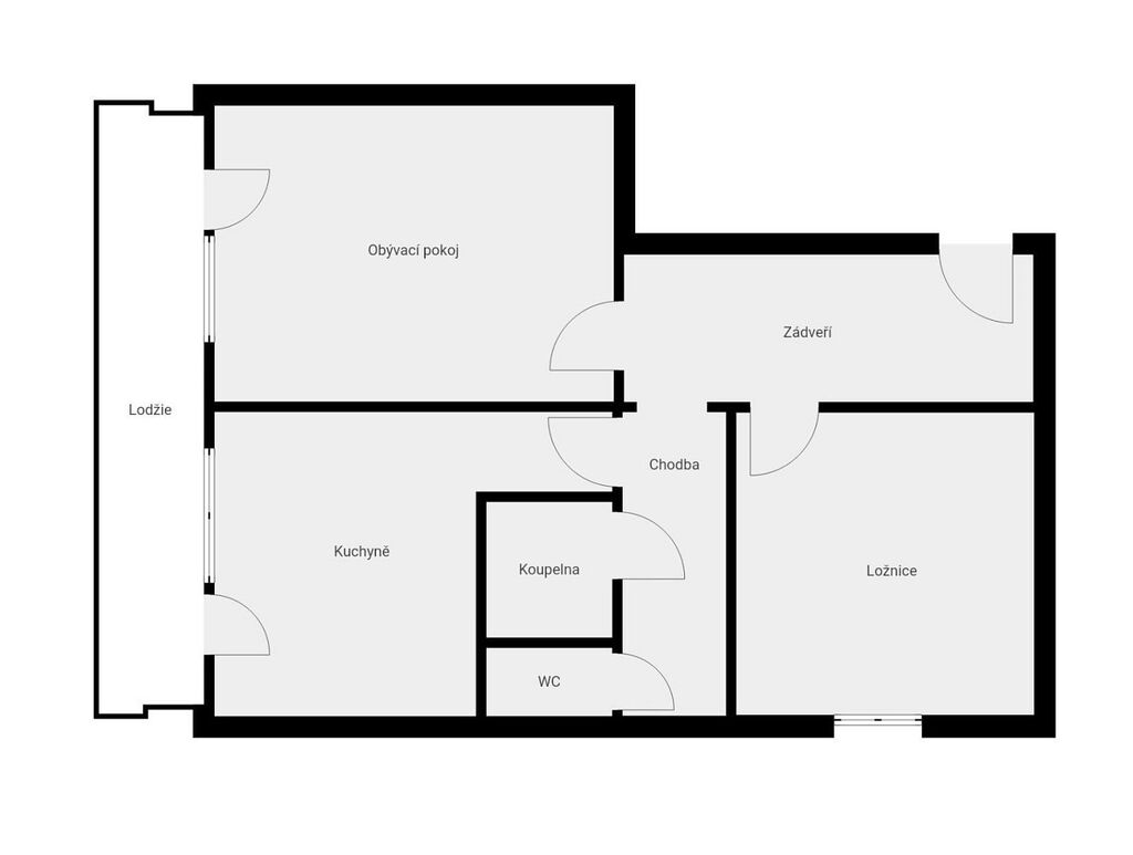 Dispozice: z předsíně vstup do kuchyně, obývacího pokoje a ložnice; koupelna s vanou, samostatné WC. Pokoje jsou neprůchozí. Velkým benefitem je opravdu prostorná lodžie orientovaná na jih, přístupná jak z kuchyně, tak z obývacího pokoje. K bytu náleží sklep v suterénu domu (cca 2 m²). Dispozice je vyobrazena na přiloženém půdorysu.