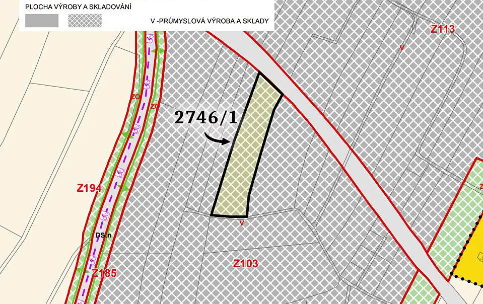 Parcela má výměru 6 644 m2 a je zapsána na listu vlastnictví 7050 pod číslem 2746/1 v KÚ Rokycany. V současné době je obhospodařována jako orná půda. Poloha tohoto pozemku je ideální - leží blízko již stávající komerční zástavby a také hned u silnice, ze které je možné odbočit na ulici Šťáhlavskou - z té je pak možné pohodlně dojet k dálnici D5 a dále již směrem na Plzeň, případně směr Rozvadov až do Německa nebo v opačném směru na Prahu.