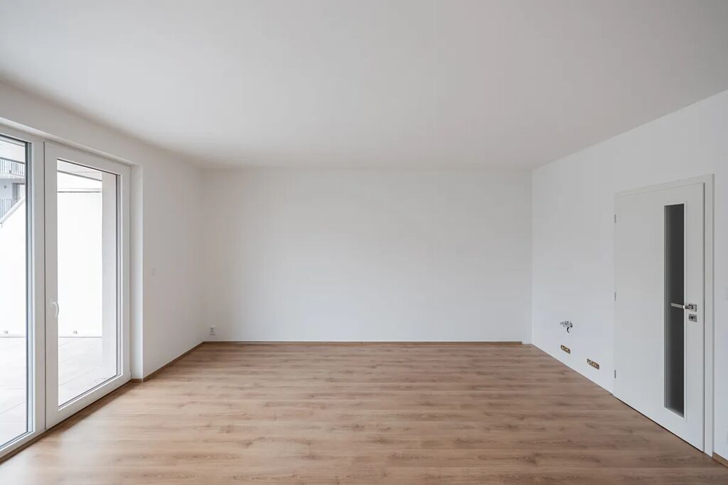 Tento byt v 1. nadzemním podlaží je tvořen obývacím pokojem s přípravou pro kuchyňský kout, jídelním prostorem a vstupem na balkon, ložnicí, koupelnou a předsíní.