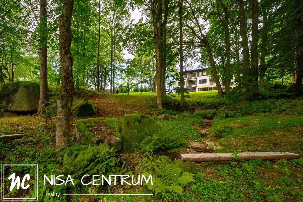 U domu se nachází lesopark s posezením u okrasného jezírka s fontánou, o kousek dál protéká potůček, jedná se o perfektní místo pro odpočinek.