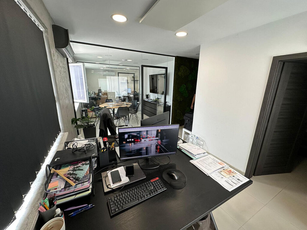 Kancelářské prostory jsou rozděleny na dvě kanceláře, prosklenou zasedací místnost, kuchyň, chodbu a wc.