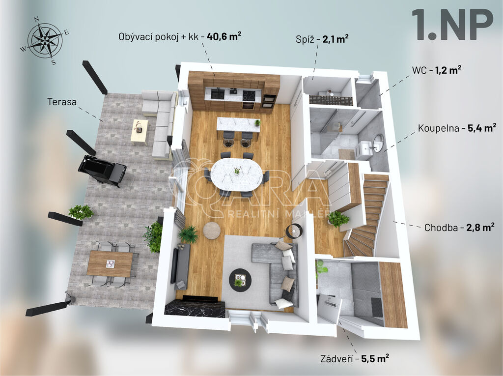 ✅ Terasa 45 m² – vaše letní obývák pod širým nebem