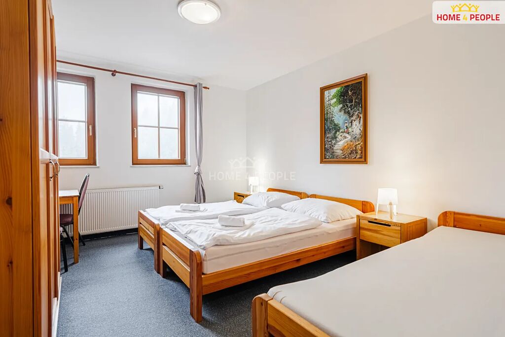 • 2. patro: 1× třílůžkový pokoj a 1× čtyřlůžkový apartmán se dvěma samostatnými ložnicemi
