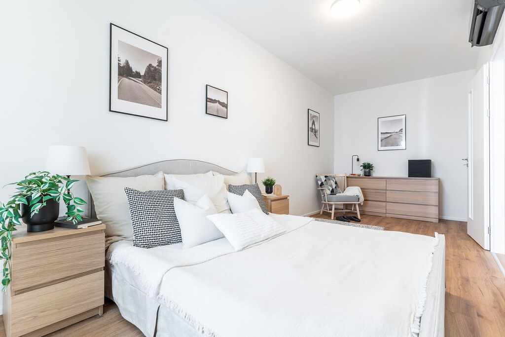 Byt o dispozici 2+kk zaujme nadstandardní velikostí 61m², velkými prosklenými okny s trojskly a prostorným balkonem, který poskytuje příjemný prostor pro relaxaci. Interiér jsme vybavili kvalitní kuchyní na míru se všemi spotřebiči a dalším užitečným nábytkem dle fotografií. Pračku se sušičkou jsme umístili do praktické komory, která dnes patří mezi výjimky a nabízí vítaný úložný prostor. V dnešní době jistě oceníte i přítomnost klimatizace a elektricky ovládaných venkovních žaluzií. V zimě se naopak příjemně zahřejete podlahovým topením.