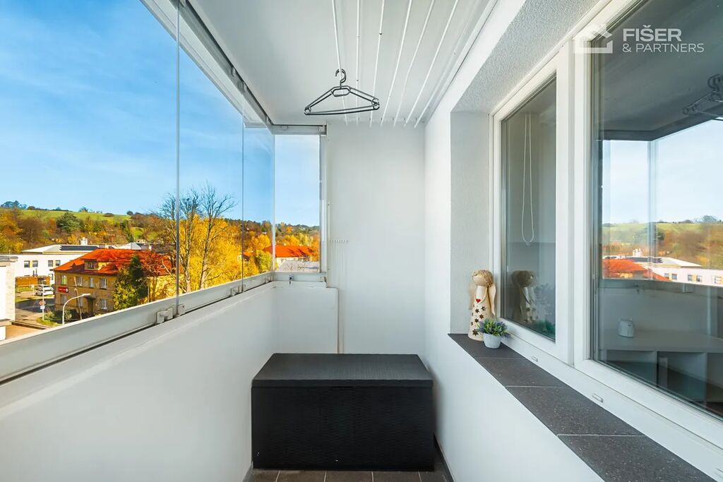 Dispozice bytu je velmi praktická nabízí dvě samostatné neprůchozí ložnice, prostorný obývací pokoj, kuchyň s jídelním koutem, koupelnu s vanou a samostatná toaleta. Z obývacího pokoje je vstup na zasklenou lodžii, která poskytuje příjemné posezení i mimo hlavní obytný prostor.