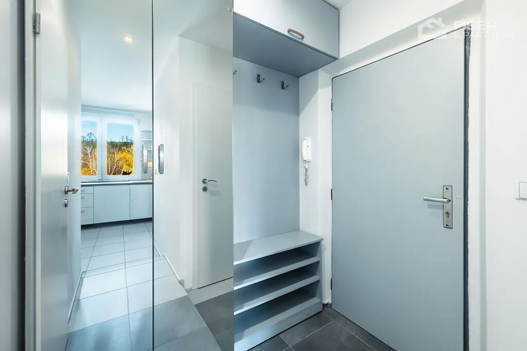 Byt je velmi světlý, orientovaný do klidné části, s krásným výhledem z posledního patra.