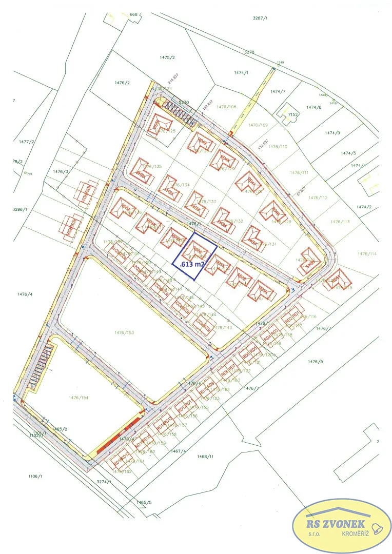 Nabízíme stavební pozemek o výměrě 613 m2 v klidné lokalitě města Kroměříž na dosah přírody, ale i blízko kompletní občanské vybavenosti. Pozemek se prodává včetně projektové dokumentace s vydaným stavebním povolením na bungalov o dispozici 4+kk s podlahovou plochou 120 m2, parkovacím stáním a zahrádkou. Po dohodě je možnost dodání stavby na klíč. Pozemek bude kompletně připravený pro výstavbu včetně veškerých napojení na inženýrské sítě, cest a chodníků. Klidné bydlení, skvělá poloha nebo i možnost investiční příležitosti. Bezpečné a příjemné prostředí pro rodinný život. Nyní probíhá výstavba inženýrských sítí. Pro více informací nás kontaktujte.