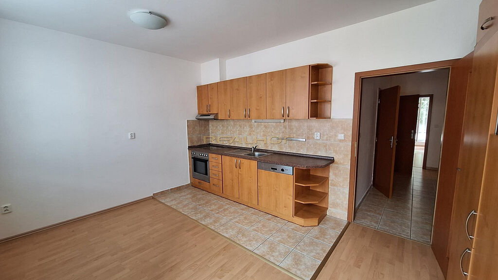 Vybavená kuchyně (myčka, lednice + mrazák, trouba se sklokeramickou deskou), podlaha plovoucí + dlažba, plastová okna s protihlukovou úpravou.