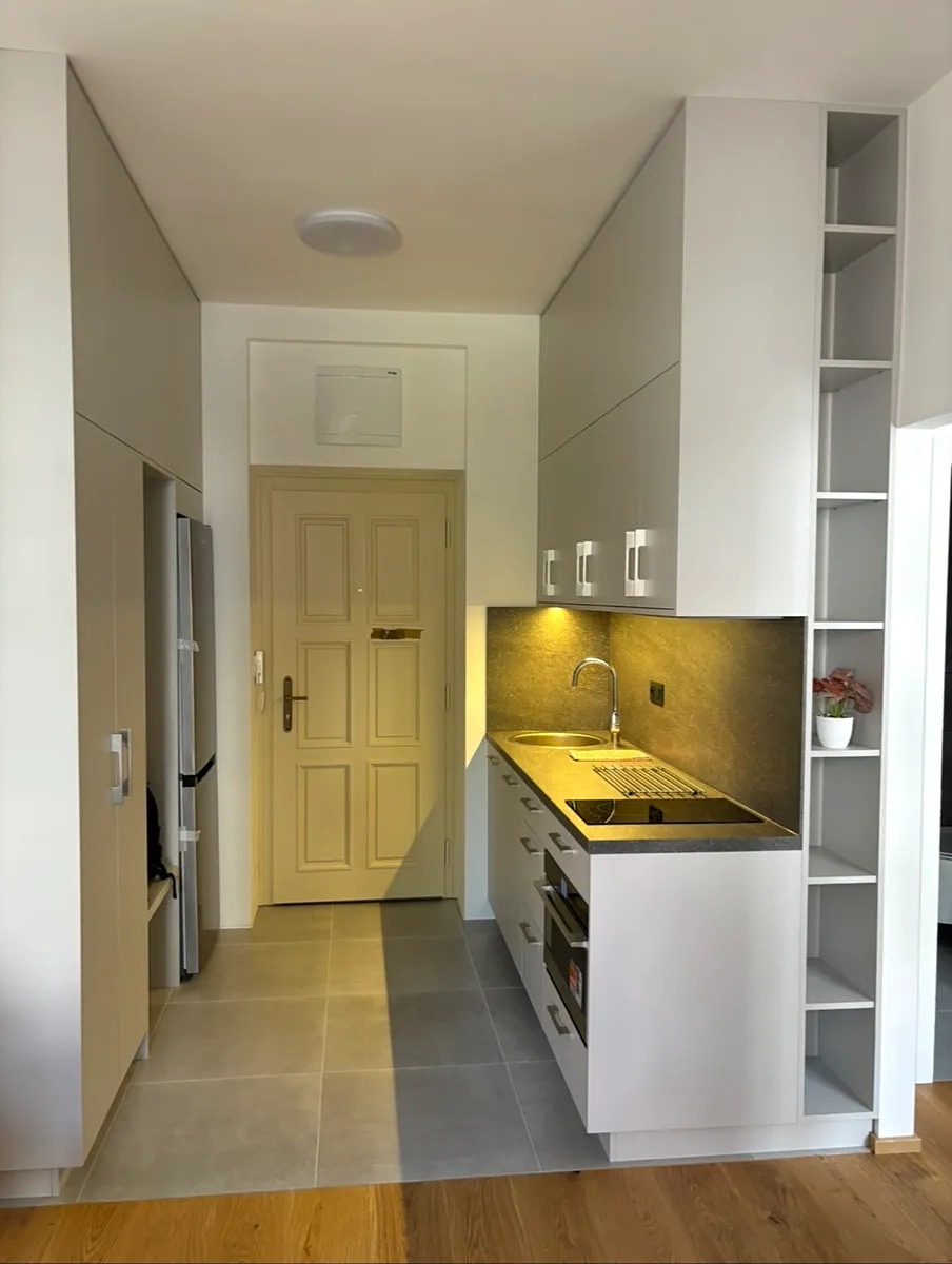 V bytě budete mít k dispozici obývací pokoj s kuchyňským koutem, ložnici a koupelnu. Byt je vybaven v osobním vlastnictví, což Vám zajišťuje stabilitu a jistotu ve Vašem novém domově.