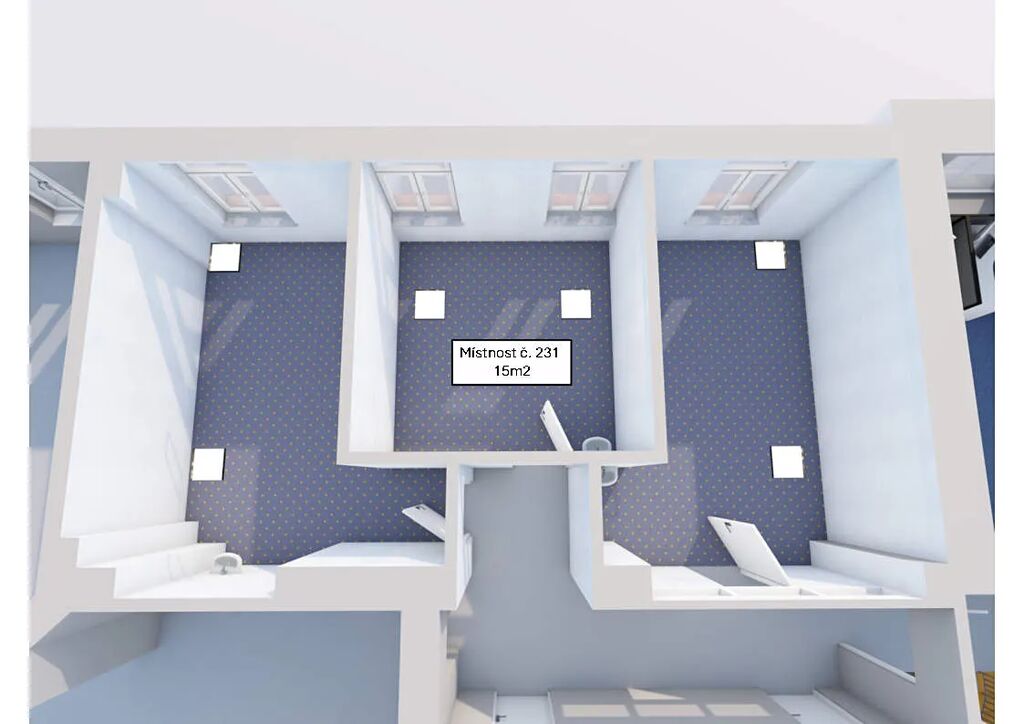 Nabízíme k pronájmu místnost s celkovou plochou 15 m2. Místnost se nachází v prvním poschodí obchodního centra Frýdečanka. Prostory jsou vhodné například pro kancelářský provoz nebo provozování služeb, např. péče o tělo. V budově již fungují tyto služby: solární studio, kosmetika, manikúra, masáže, tetovací salóny atd.