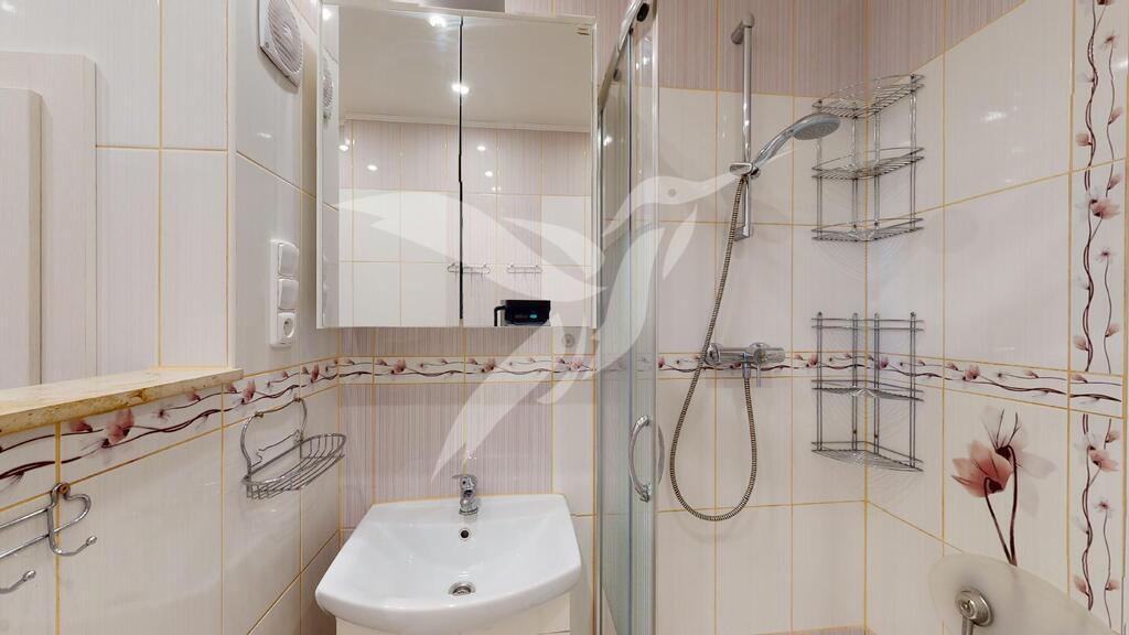 Nemovitost o velikosti 61 m2 se nachází v 8. NP panelového domu s výtahem a skládá se z předsíně, pokoje včetně kuchyňské linky, samostatného pokoje, samostatného pokoje s lodžií, koupelny, toalety a k bytu náleží i sklep situovaný v suterénu bytového domu. Byt se pronajímá jako nezařízený a jeho součásti je kuchyňská linka se sporákem a digestoří + kombinovanou chladničkou. Vytápění a ohřev vody je zajištěn dálkovými dodávkami.
