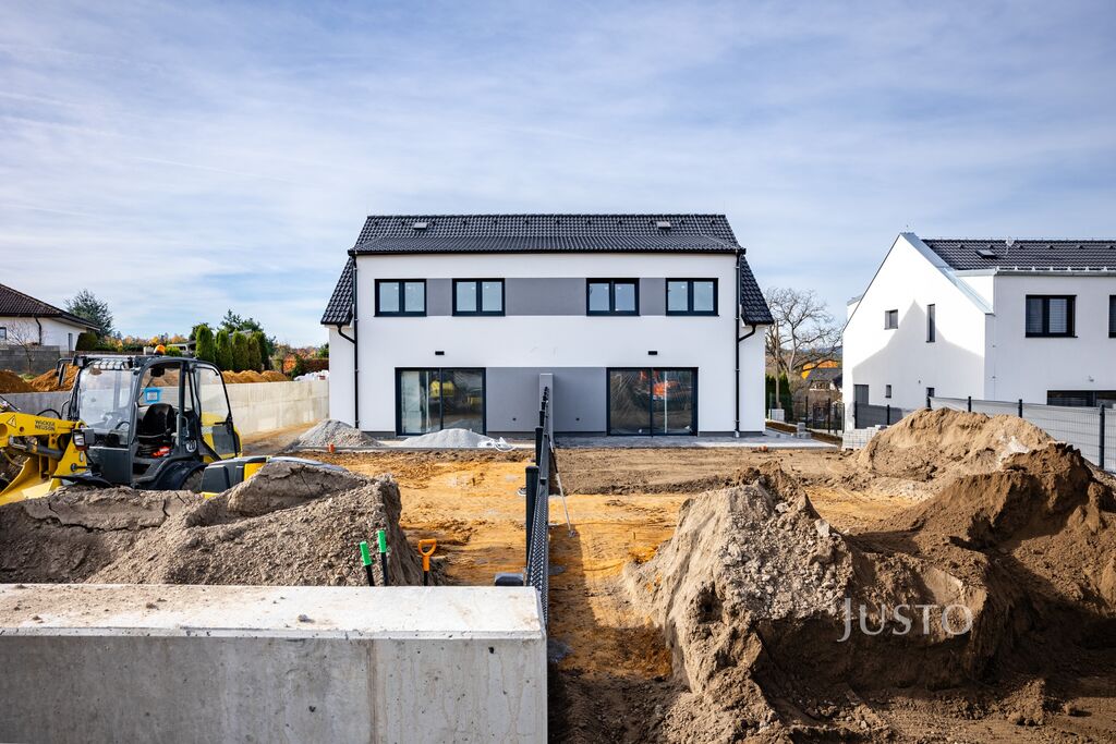 Dispozice 5+kk s užitnou plochou 121 m² nabízí velkorysý prostor, který si zamilujete hned při první prohlídce. Součástí každé jednotky je navíc vlastní zahrada o výměře cca 282 m², dvě parkovací stání, terasa, vlastní tepelné čerpadlo značky Panasonic, nezámrzný venkovní kohout na vodu, příprava na venkovní žaluzie (bez lamel), hotový plot a mnoho dalšího. Zahrada bude předána srovnaná a s navezenou ornicí, připravená k osetí trávníkem. Praktickým benefitem je také dostatečně široký přístup na pozemek kolem jednotky, včetně hotového chodníku.