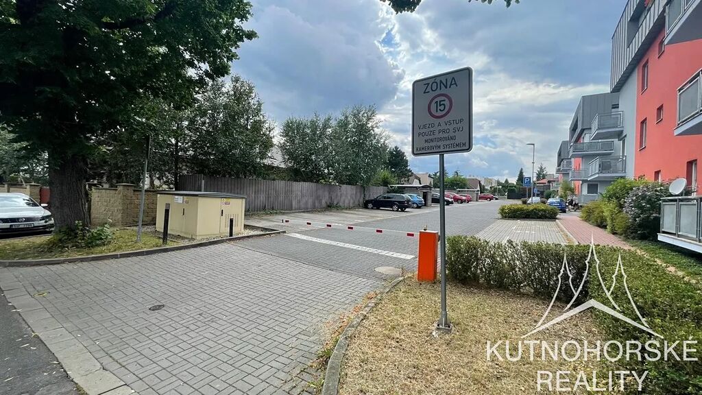 Parkoviště se nachází za dálkově ovládanou závorou a hlídané kamerovým systémem umístěným na budově. Plocha parkovacího stání je 12 m2.