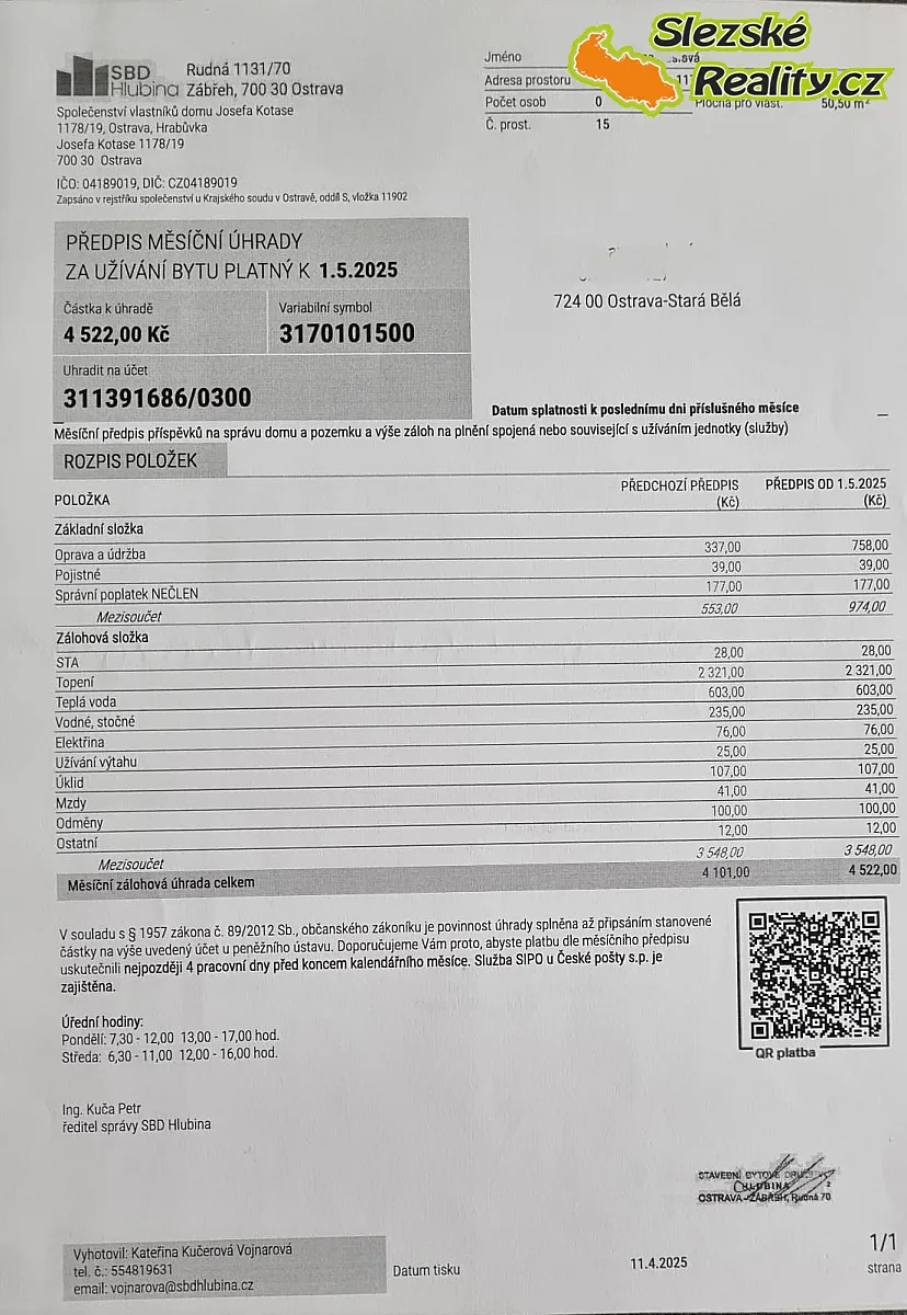 Naše společnost vám nabízí k prodeji bezbariérový byt v osobním vlastnictví 2+1 o velikosti 52 m² na adrese Josefa Kotase 19, Ostrava-Hrabůvka.
