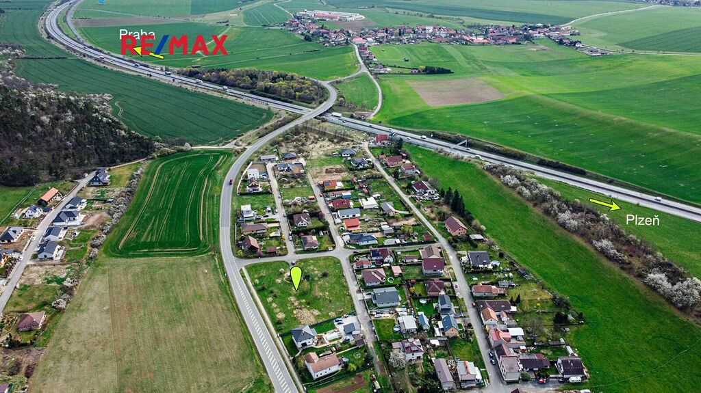 Další výhodou této nemovitosti je beze sporu poloha. Parcela se nachází v blízkosti nájezdu na dálnici D5 (34. kilometr Praha - Plzeň) což zajišťuje snadnou dostupnost do všech okolních měst.