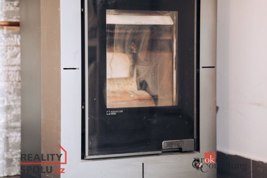 Vytápění plynovým kotlem v kombinaci s krbovými kamny s tepelným výměníkem.