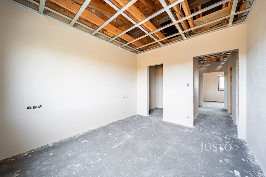 Dispozice domu je promyšlená do posledního detailu. Dominantou přízemí je otevřený obývací prostor s kuchyňským koutem o výměře 34,84 m² – místo, kde se odehrává každodenní rodinný život. Díky přímému vstupu na terasu (13,8 m²) a zahradu se interiér krásně propojuje s venkovním prostorem. Nechybí ani pracovna či pokoj pro hosty (9,69 m²), který se přizpůsobí vašim aktuálním potřebám – ať už jde o práci z domova, nebo ubytování návštěvy. Dále v přízemí najdete zádveří (5,43 m²), chodbu (5,14 m²), technickou místnost (2,10 m²) a koupelnu s walk-in sprchovým koutem a WC (4,69 m²).