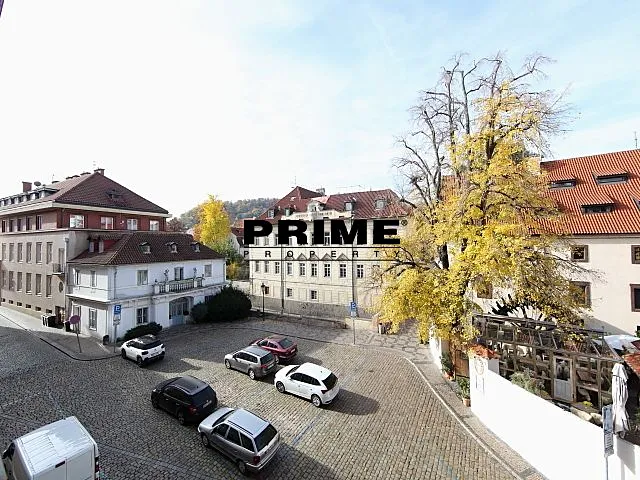 Z bytu je výhled na Pražský hrad a Čertovku. Dispozice bytu: obývací pokoj s krbem a barokním dřevěným malovaným stropem a s jídelní částí, samostatná, plně vybavená malá kuchyň se spotřebiči (sklokeramická varná deska, trouba, myčka, lednice a mrazák), ložnice s vlastní koupelnou (s hlubokou vanou/bazénkem, umyvadlem, toaletou a bidetem), druhá ložnice a druhá koupelna (se sprchovým koutem, umyvadlem, toaletou a bidetem).
