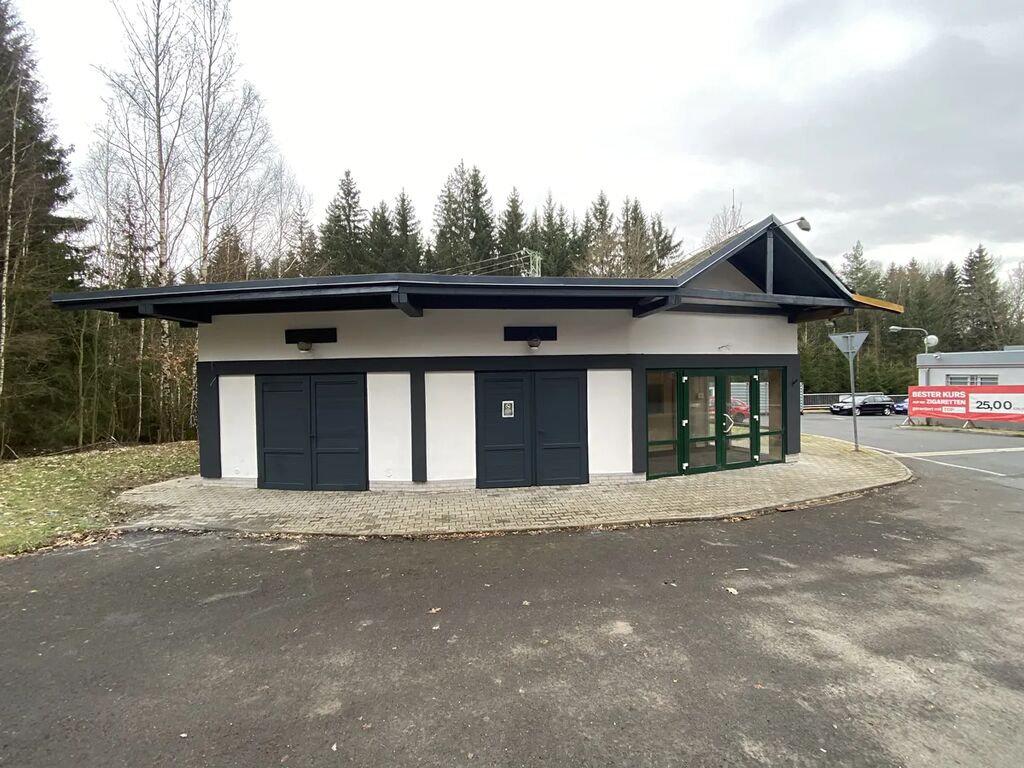 Jedná se o zděný přízemní objekt se zastavěnou plochou 70 m2. Uvnitř najdeme příjemné prostory vhodné na provozování prodejny, směnárny, kanceláře, skladu atd. Jedinečná strategická poloha v zóně bez další možnosti výstavby u velmi frekventovaného hraničního přechodu. Objekt má vlastní sociální zázemí a je napojen na kompletní inženýrské sítě (elektro, voda, kanalizace). Budova je ve výborném technickém stavu s nízkými provozními náklady. Nabízená nemovitost má maximální komerční využitelnost a také bezbariérový přístup. Před domem je k dispozici zpevněná parkovací plocha na vlastním pozemku o výměře 145 m2.