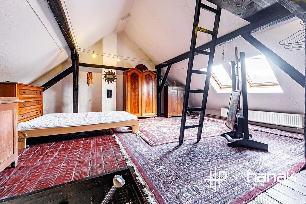 V podkroví se nachází jedna velká místnost vhodná například jako ložnice a menší místnost, kterou lze využít jako pracovnu. Schodiště do podkroví je ocelové se strmějším sklonem.