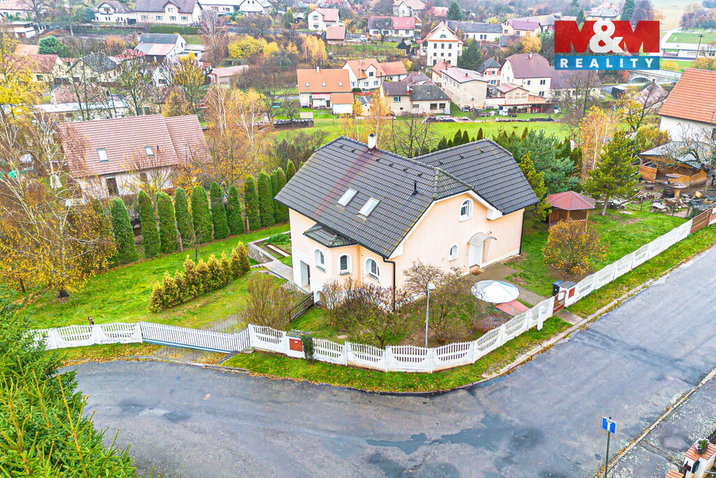 Nabízíme k prodeji dům s rozlehlou zahradou v obci Vilémov, v klidné ulici. Poskytuje příjemné bydlení i pro vícečlennou rodinu. Přízemí domu tvoří obývací pokoj propojený s jídelnou a kuchyní, pokoj, vstupní chodba a WC. Z obou pokojů je vstup na terasu. V patře jsou tři ložnice a koupelna s hydromasážní vanou a sprchovým koutem. V suterénu se nachází garáž pro dvě auta a sklepní prostory. Dům byl postaven v roce 2001 a v posledním roce prošel několika renovacemi, např. výměna některých oken, osazení venkovních rolet, výměna plynového kotle, rekonstrukce terasy. Topení zabezpečují kromě plynového kotle i krbová kamna s výměníkem, v přízemí je podlahové topení, v patře jsou radiátory. Na terasovité udržované zahradě je krytý bazén vyhřívaný tepelným čerpadlem a altán. Pozemek je celý oplocený.