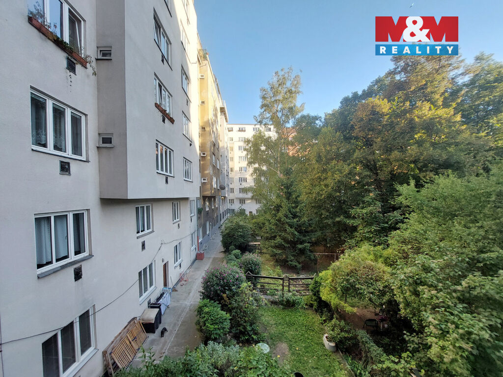 Okna obou pokojů jsou orientována na jih do klidného vnitrobloku plného zeleně.