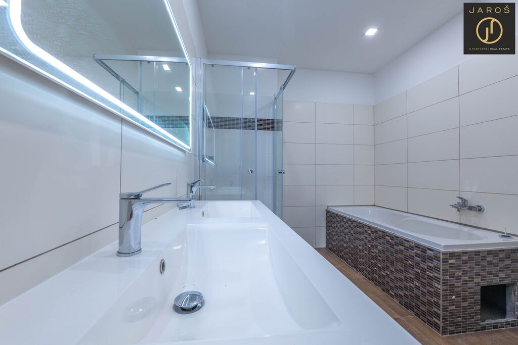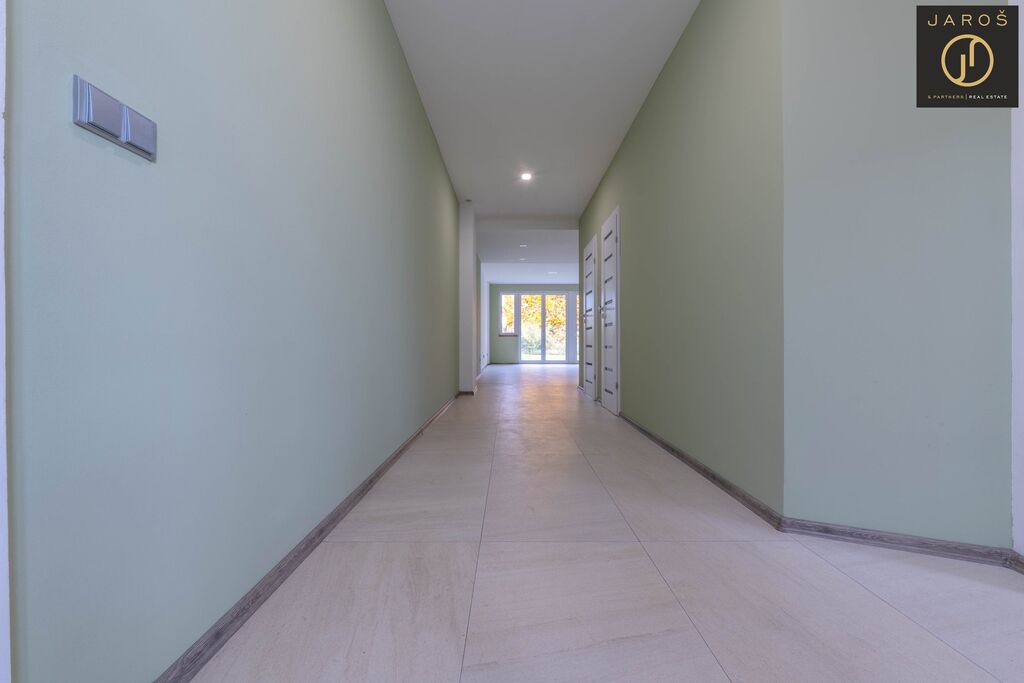 Nabízíme vám k prodeji moderní řadový rodinný dům o dispozici 5+kk s celkovou plochou 234 m² v projektu Rezidence Park Svitavy. Dům nabízí prostorný obývací pokoj s kuchyňským koutem, který přímo navazuje na terasu a zahradu směrem do parku. V přízemí se dále nachází koupelna, pracovna a zádveří. Mezipatro nabízí vstup na terasu směrem do ulice. V patře jsou čtyři samostatné pokoje, koupelna a balkon s příjemným výhledem do zeleně, přístupný z obou pokojů. Součástí je také garáž přístupná ze vstupní chodby a dvě parkovací stání přímo před domem.