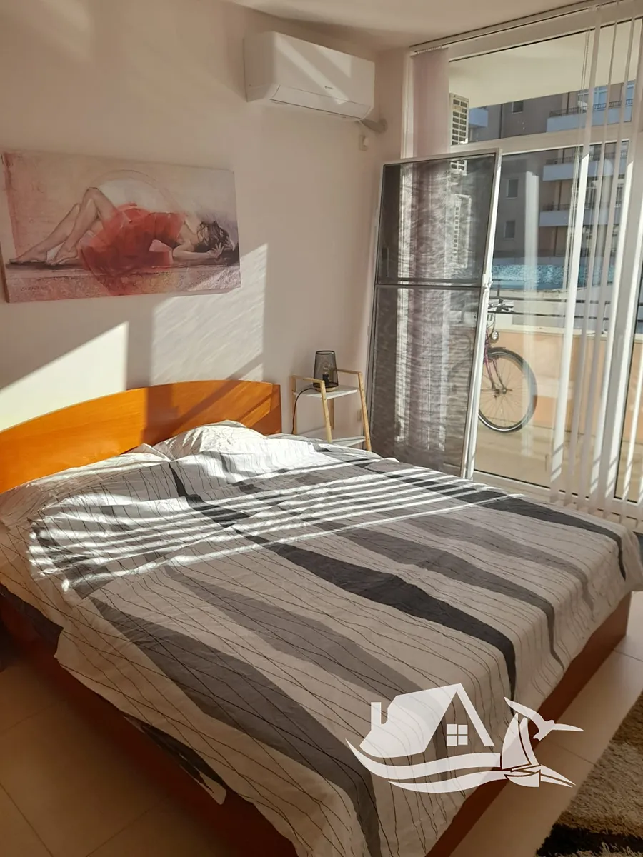 Představte si letní ráno, kdy se probouzíte do ticha prozářeného sluncem. Vzduch voní mořem, zeleň se leskne po noční rose a vy vystoupíte na balkon – před vámi se rozprostírá modrý bazén a klidně působící areál, který dýchá pohodou. Právě takový pocit nabízí tento světlý a prostorný apartmán v komplexu Grand Kamelia – místě, kde se žije lehce, v rytmu moře a slunce.