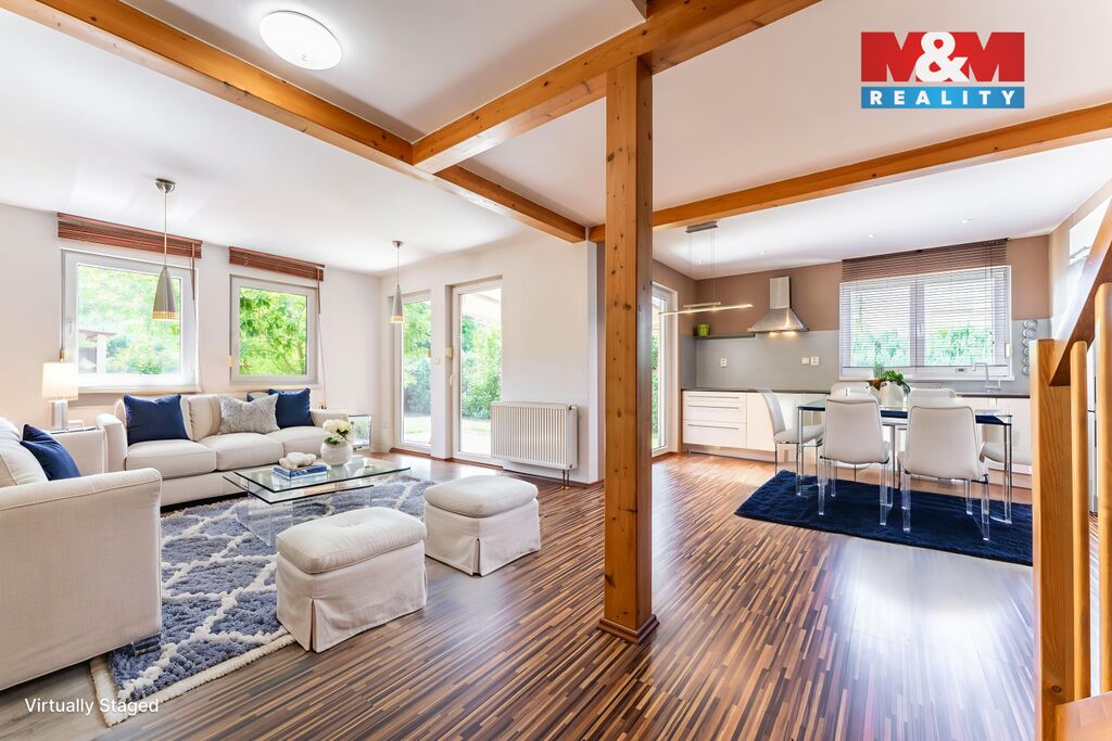 Nabízíme k prodeji moderní a pečlivě udržovaný rodinný dům v oblíbené a tiché části Chýně. Jedná se o kvalitní úspornou dřevostavbu s dispozicí 5+kk, dvěma koupelnami, komorou a celkovou užitnou plochou 113 m², rozloženou do dvou nadzemních podlaží. Dům je situován na pozemku o velikosti 284 m². Součástí domu je prostorná terasa s pergolou, ideální pro odpočinek a rodinné posezení, lodžie v 1.patře, dále praktická pochozí půda, zahradní domek a tři vlastní parkovací stání. Komfort bydlení zvyšují také předokenní rolety instalované v celém domě. Vytápění a ohřev vody zajišťuje plynový kotel, koupelny a chodbu navíc vytápí elektrické rohože. Celý dům je napojený na bezpečnostní službu Jablotron. Nemovitost se nachází ve velmi klidné lokalitě, která zajišťuje dostatek soukromí a zároveň dobrou dostupnost do Prahy i občanskou vybavenost v místě. Dům je ve výborném stavu a připraven k okamžitému nastěhování. Neváhejte a přijďte se podívat na místo, kde se budete cítit skutečně doma.