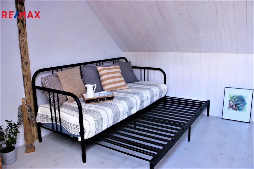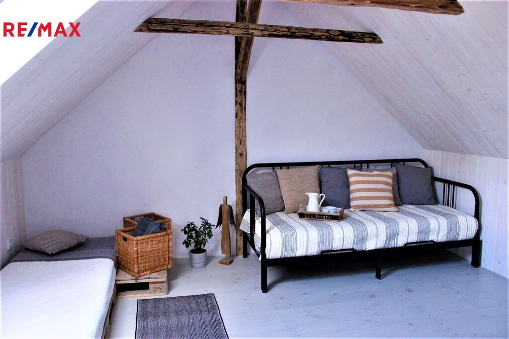 Do patra vedou točité schody, které ústí do dvou neprůchozích ložnic, každá s kapacitou až tří osob.