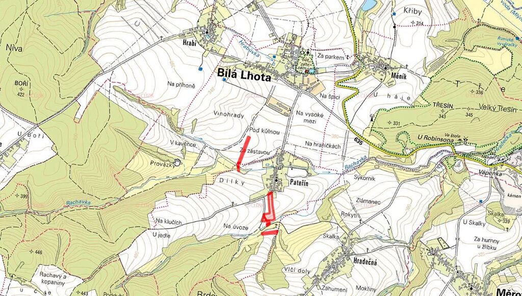 Na LV 197 v KÚ Bílá Lhota se jedná o půdu na parcelách 78/241 a 78/338.