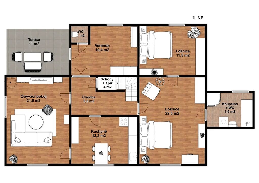 Užitná plocha: cca 185 m² (včetně sklepa a terasy)