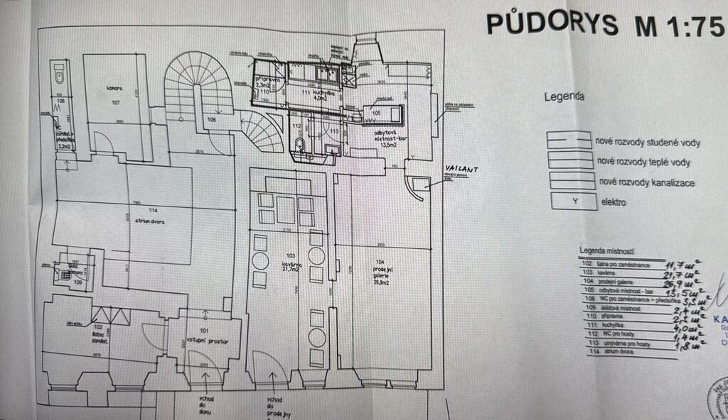 Prostor kolaudován jako kavárna a prodejní galerie. Restaurace není možná.