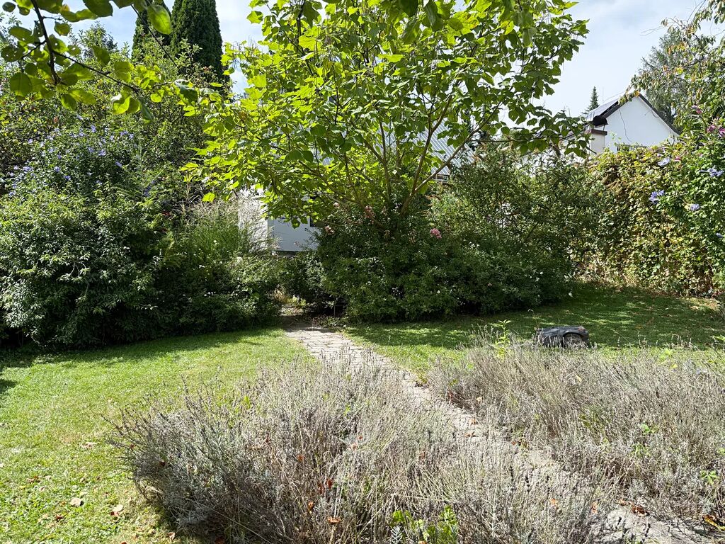 Když si ráno uvaříte kávu a vyjdete ven, čeká vás 300 m² zahrady se vzrostlými stromy a terasou s posezením – ideální místo pro klid po práci.