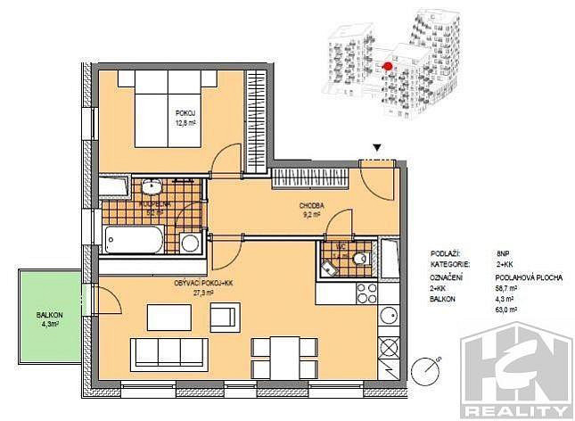 Pronájem exkluzivního bytu 2+kk+balkon, 58,7m, v 8. N. P., v novostavbě bytového domu, ul. U Nisy, Liberec, centrum města. Z bytu hezký výhled na Ještěd. Kuchyňská linka s myčkou, vestavěnou lednicí, indukční deskou, horkovzdušnou troubou a digestoří. V bytě jsou na všech oknech venkovní žaluzie na dálkové ovládání. K bytu náleží vyhrazené parkovací stání pro jedno auto a sklepní kóje. Dispozice bytu: chodba 9,2m², obývací pokoj s kuchyňským koutem 27,3m² a balkon 4,3m², koupelna se sprchovým koutem a WC 5,2m², samostatné WC 1,4m², pokoj 12,8m². ÚT s centrálním měřením. Nájemné 18.000,- Kč/měs. + služby (voda, teplo, el. ) 2.800,- Kč/měs. + komunální odpady, volný ihned. Vratná kauce 54.000,- Kč, provize RK 18.000,- Kč. Volný od 1.1.2026. Pokud máte o tento pronájem bytu zájem, napište mi prosím o sobě tyto informace - počet osob a jejich zaměstnání - pracovní pozice, zvířata, důvod pronájmu apod., děkuji. Váš realitní makléř.