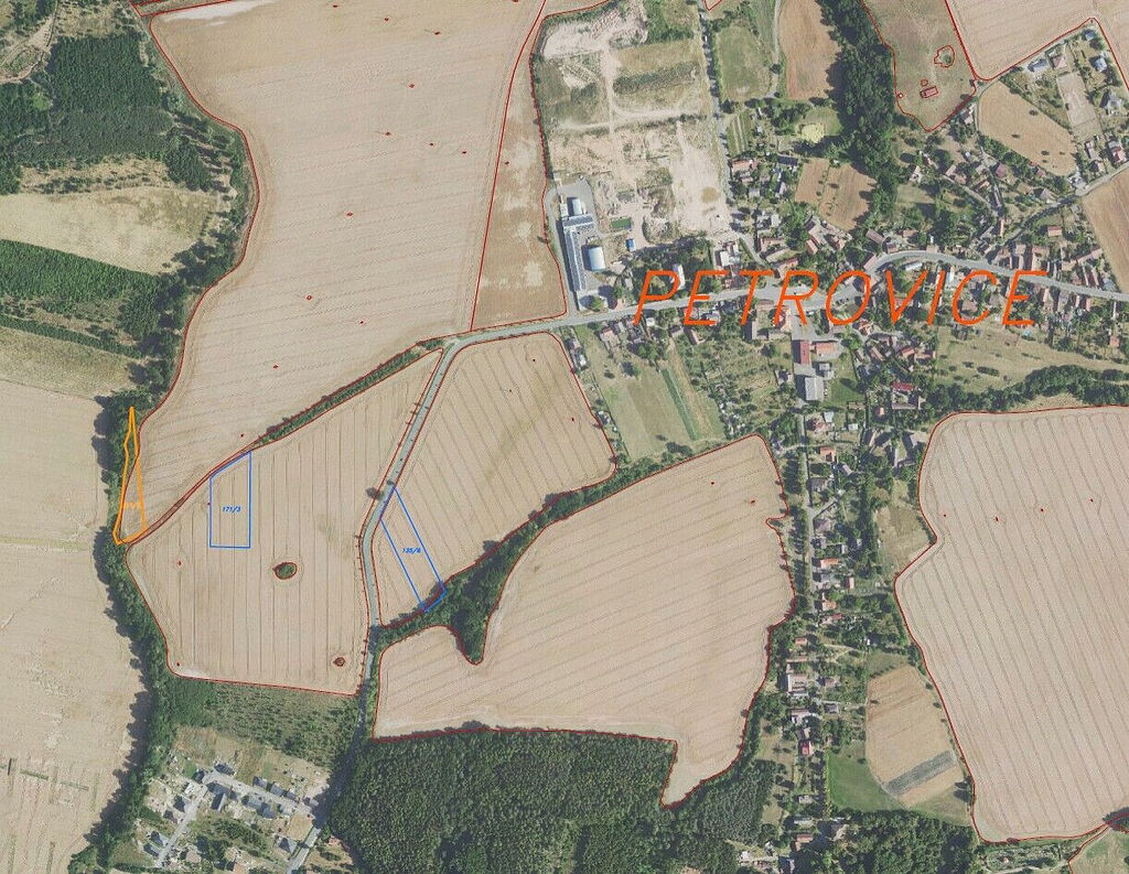 Nabízíme k prodeji pozemky o výměře 5 266 m² v okolí Petrovic u Rakovníka. Jedná se o prodej jednoho pozemku ve výlučném vlastnictví o výměře 3 393 m² a dvou pozemků v podílovém spoluvlastnictví 1/6 podílové výměry 1 873 m² (zbývající podíl vlastní dva spoluvlastníci). V katastru jsou všechny pozemky vedeny jako orná půda.